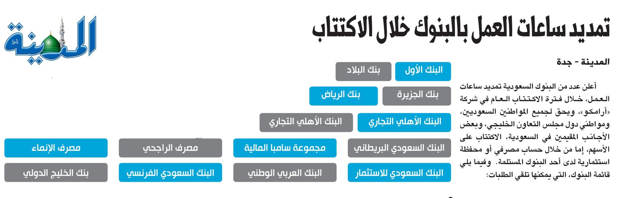 هاشتاق السعودية On Twitter تمديد ساعات العمل في البنوك تزامن ا مع اكتتاب أرامكو المدينة