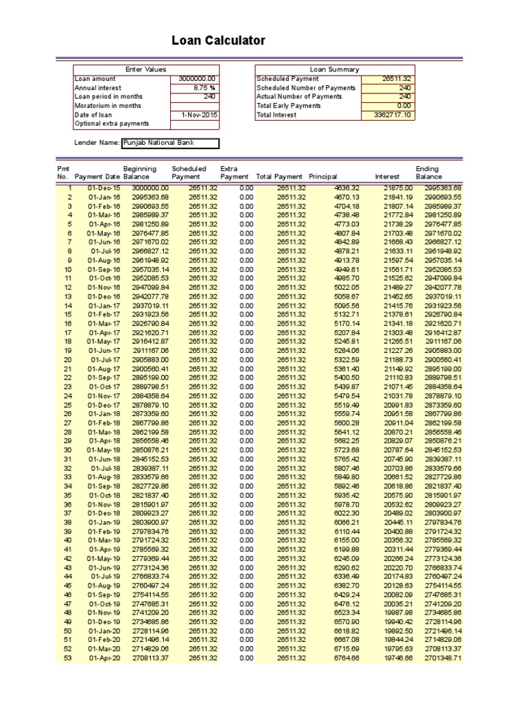 Loan Calculator Enter Values Loan Summary Loans Personal Finance Free 30 Day Trial Scribd